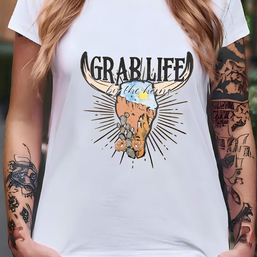 Grab Life By The Horns Shirt, No Bull Tee, Longhorn Shirt, Western Graphic Tee For Women, Cow Shirt T-shirt