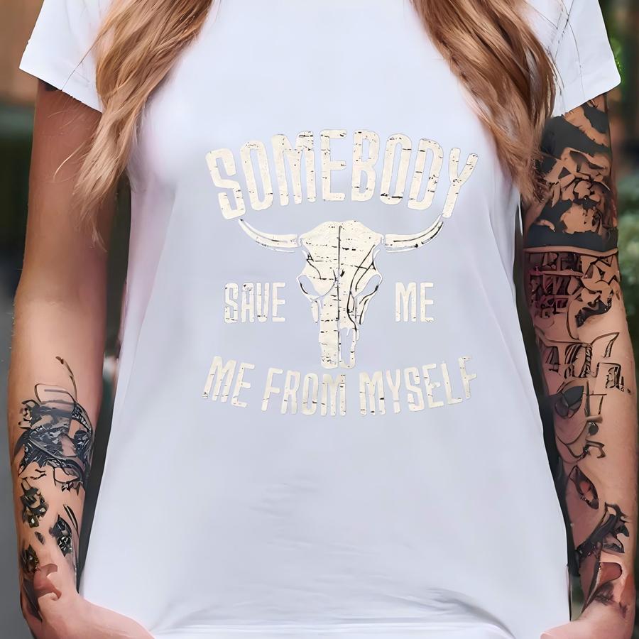 Somebody Save Me Me From Myself Shirt, Cow Skull Shirt, Hippie Vibes Shirt, Retro Graphic Tee, Country Music Shirt, Arrow Shirt T-shirt