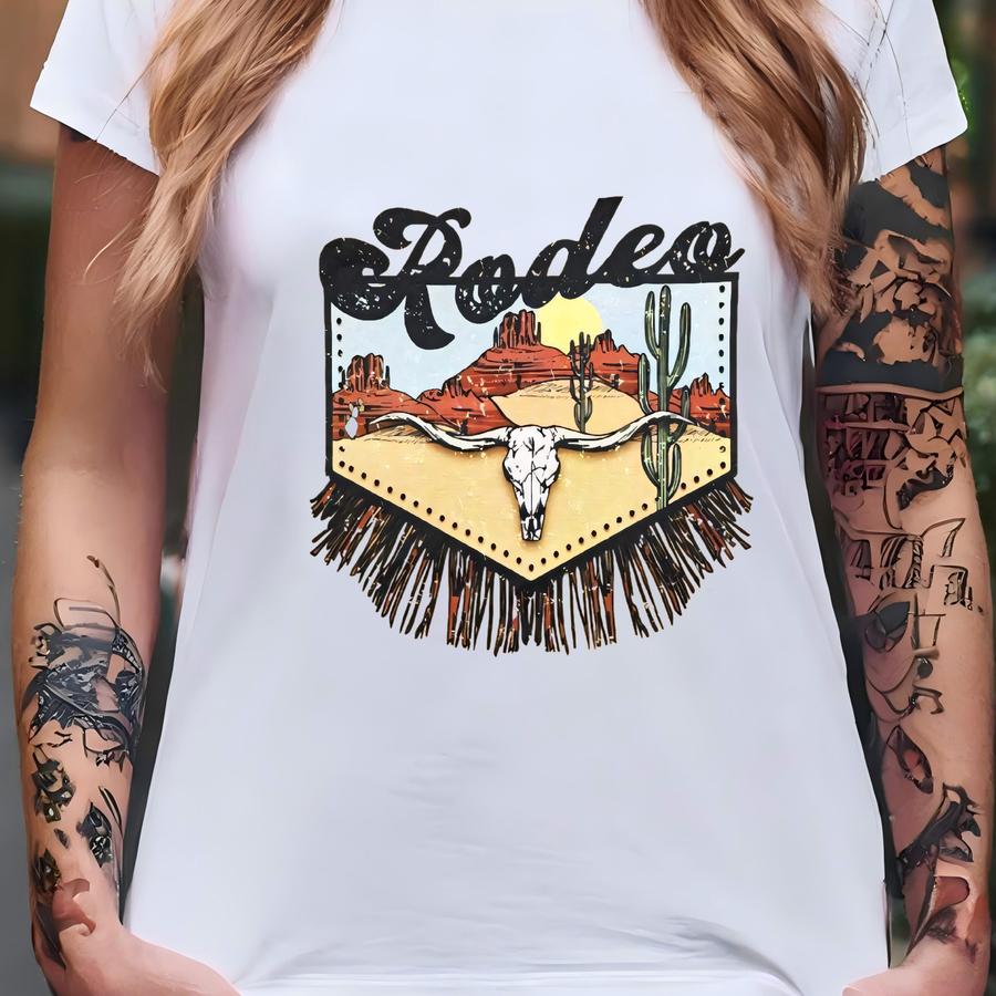 Rodeo Fringe Shirt, Desert Cow Skull Shirt, Wild West Shirt, Rodeo T Shirt, Vintage Cowboy Shirt, Rodeo Gift, Cowgirl Shirt T-shirt
