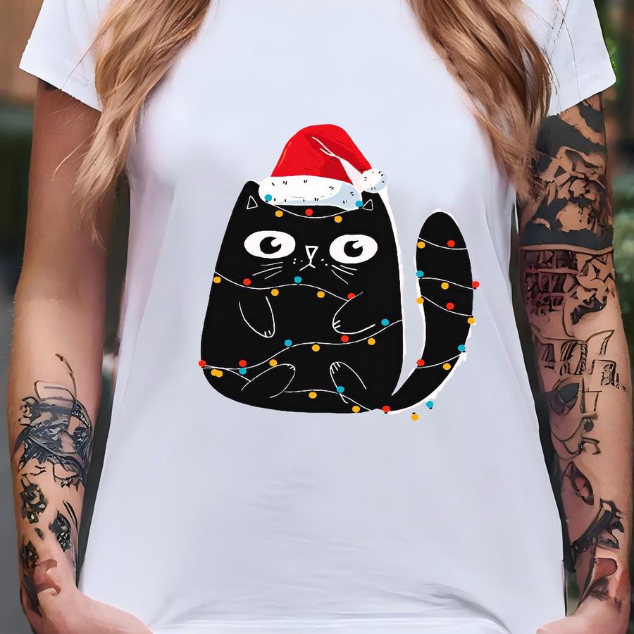 ® Christmas Light Cat Shirt, Cat Lover Gift T-shirt