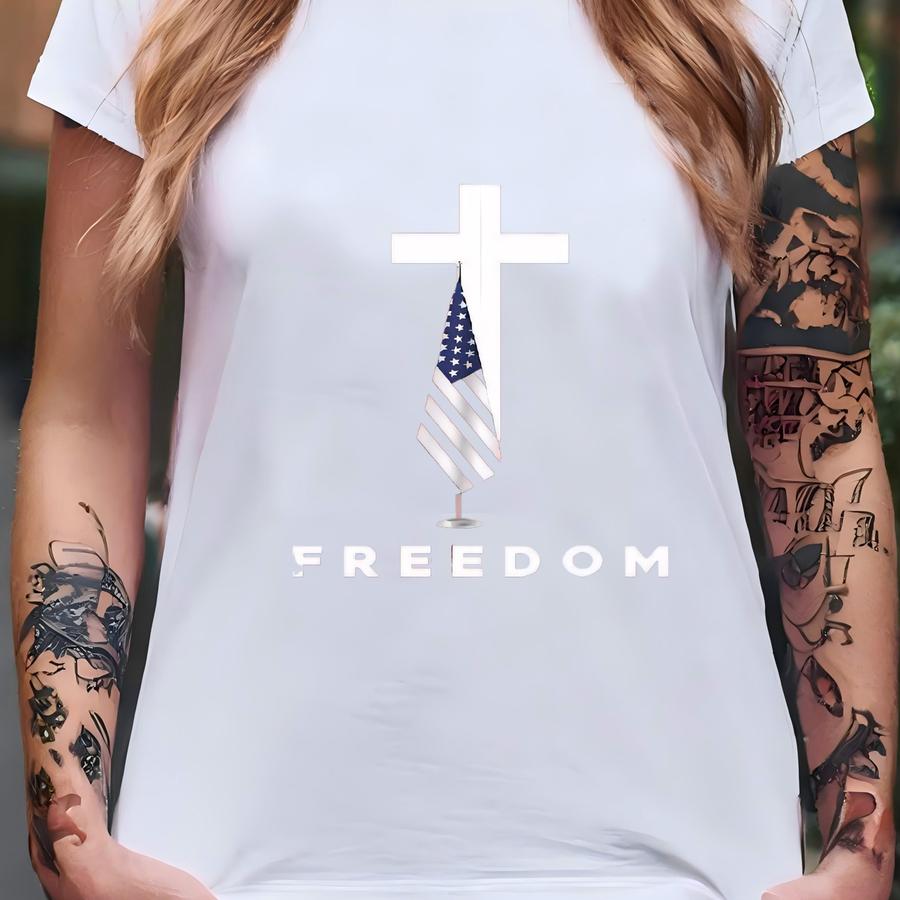 Flag And Cross Patriotic Freedom Shirt - Bella Canvas Unisex Preshrunk Hoodie, American Flag, Usa Pride, 4th Of July Tee T-shirt