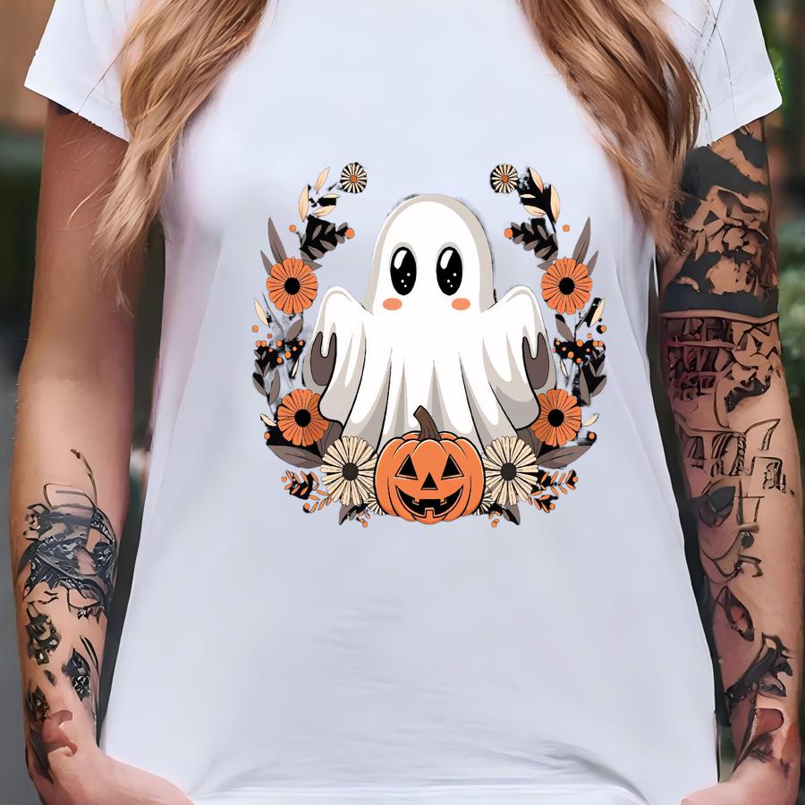 Floral Ghost Halloween Shirt: Vintage Fall Tee T-shirt