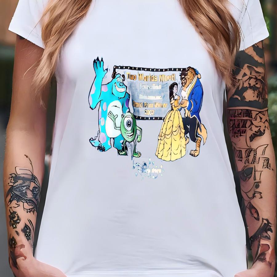 Vintage 90s Beauty And The Beast Denim Jeans Jacket Sweater Pullover Y Logo Blue Color Men's L T-shirt