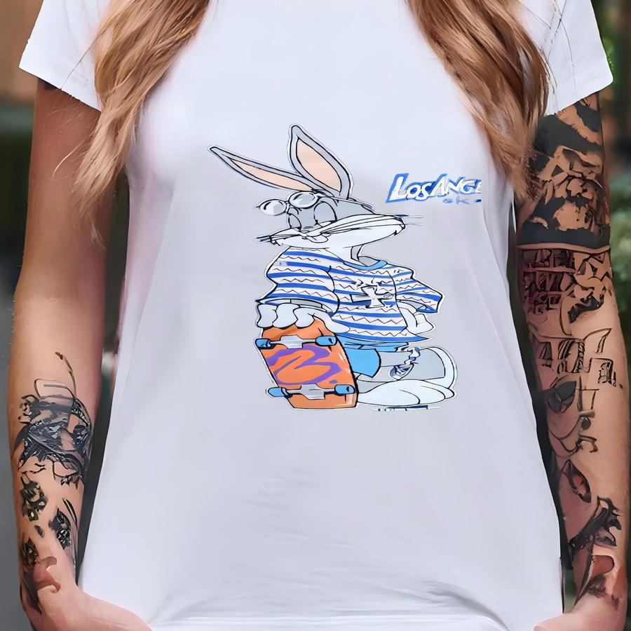 Vintage 90s Bugs Bunny Los Angeles Skate Sweatshirt Bugs Bunny Crewneck Bugs Bunny Pullover Printed Logo Blue Color Men’s Fit M T-shirt