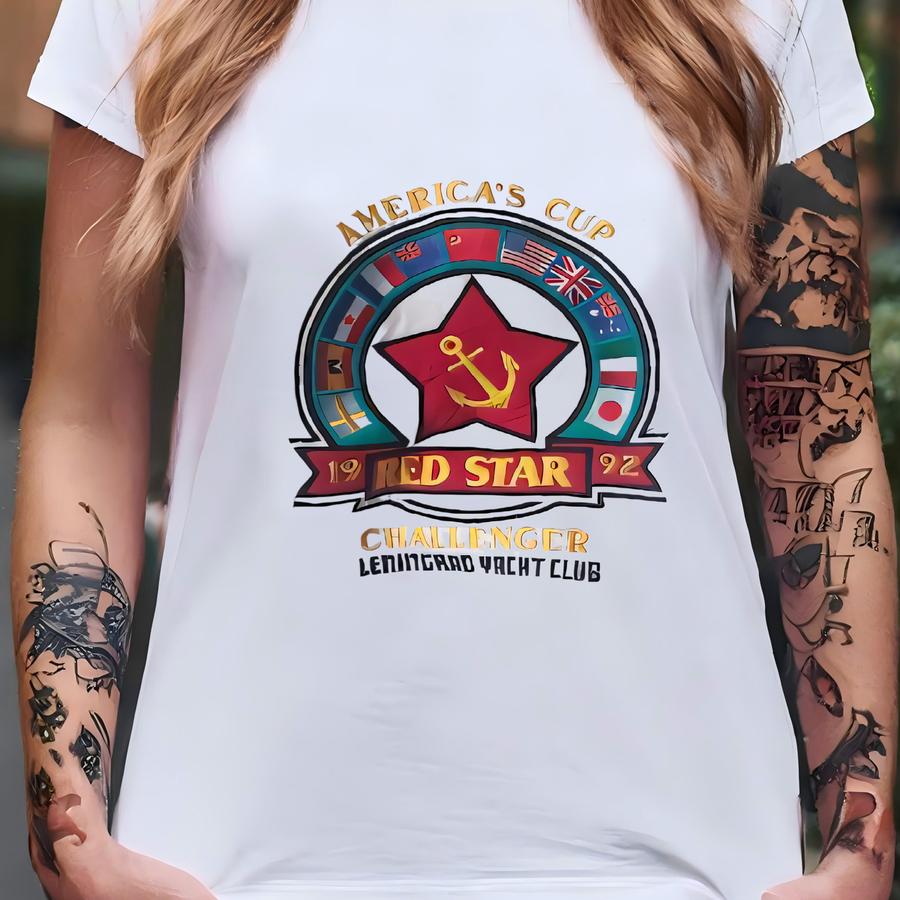 Vintage 90s Distressed Leningrad Yacht America's Cup Sweatshirt Yacht Crewneck Yacht Pullover Y Logo White Color Men’s Fit M T-shirt