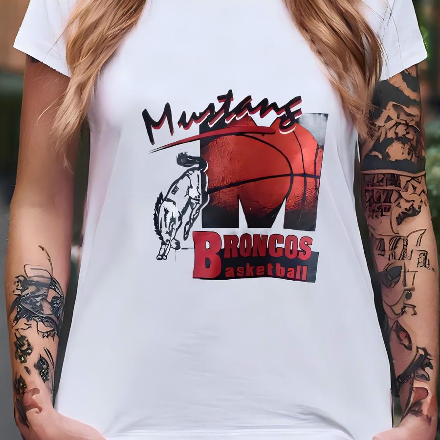 Vintage 90s Distressed Ncaa Mustang Broncos Basketball Sweatshirt Mustang Crewneck Mustang Pullover Printed Logo Gray Color Men's Fit M T-shirt