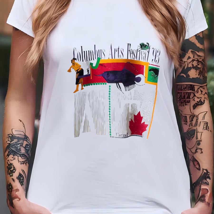 Vintage 90s Columbus Arts Festival Sweatshirt Columbus Crewneck Columbus Pullover Columbus Sweater Printed Logo White Color Men’s Fit M T-shirt
