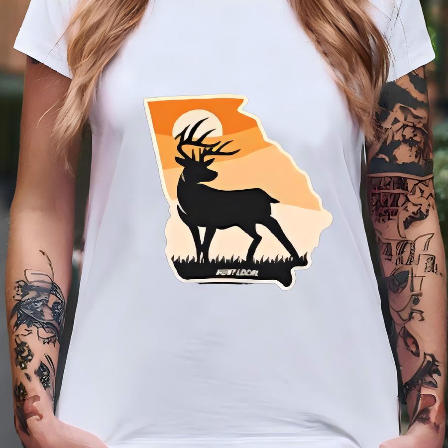 Georgia - Sunset Deer Hunting Shirt, Men's Whitetail Buck Apparel, Women's Hunting Tshirt, Gifts For Hunters, T-shirt