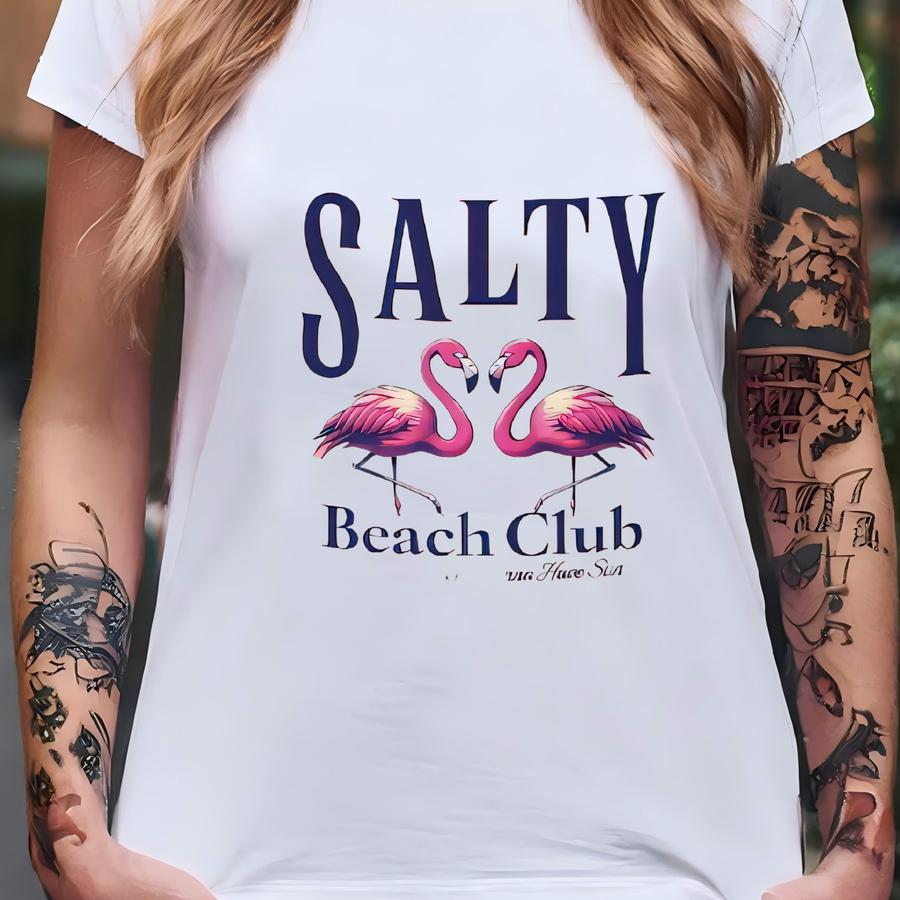 Salty Beach Club Can Cooler: Tropical Flamingo Drink Holder T-shirt