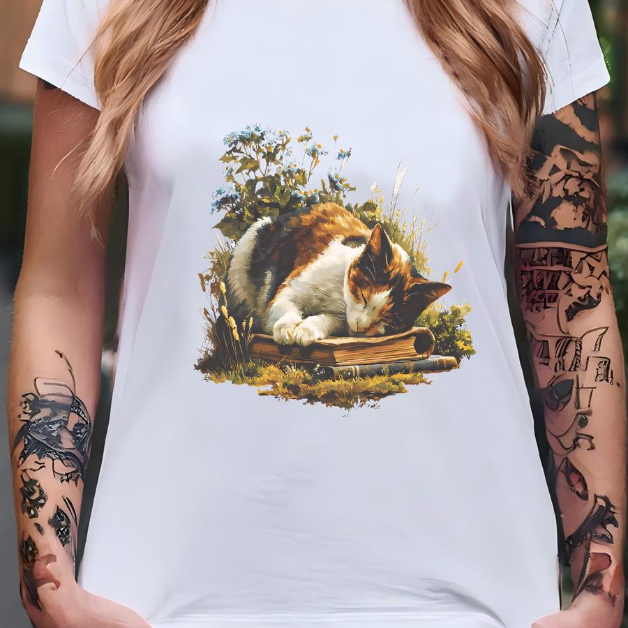Calico Cat Book Lover Sweatshirt Cozy Reading Crewneck Cat Graphic Shirt Literature Inspired T-shirt
