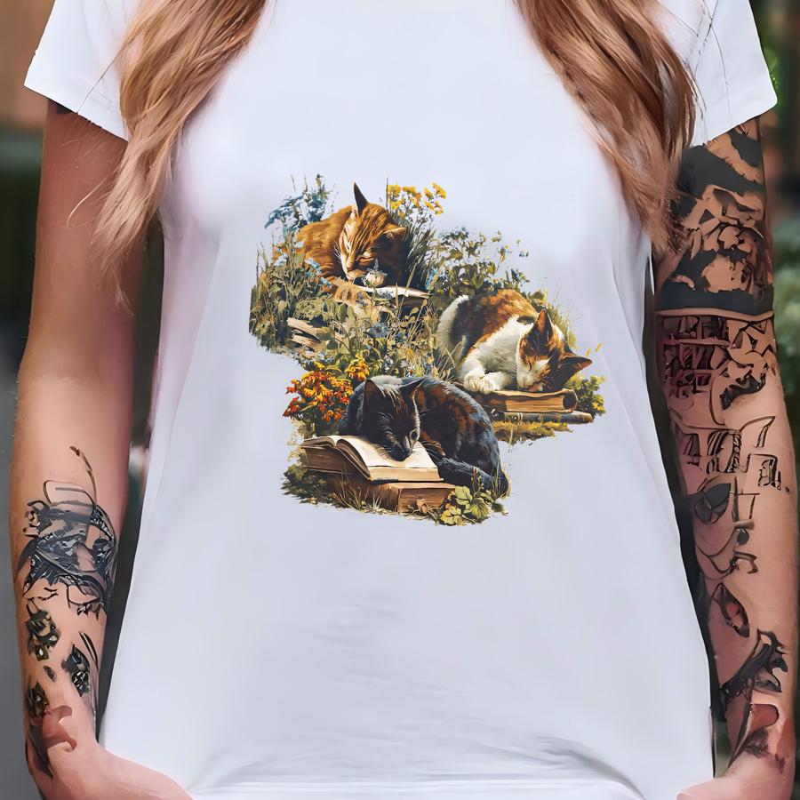 Cats And Books Sweatshirt Cozy Book Lover Shirt Cat Graphic Tee Literature Inspired Crewneck T-shirt