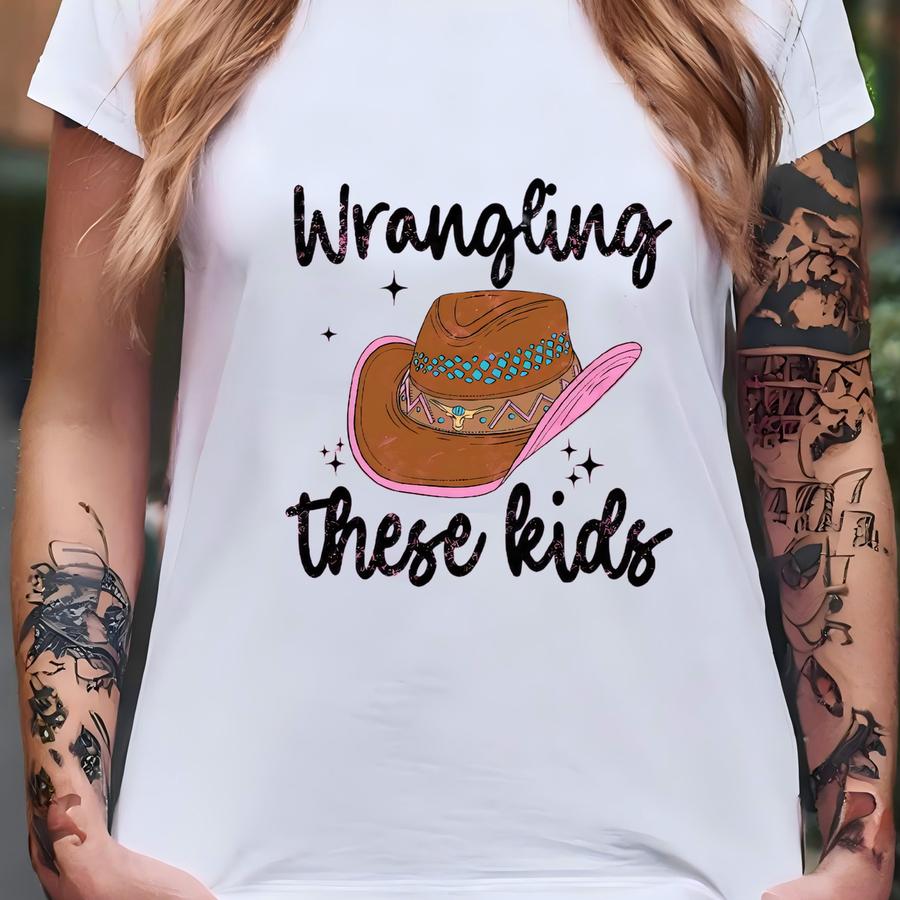 Wrangling These Kids Cowboy Hat Unisex Tee-western Style Shirt, Fun Gift For Moms, Teachers, Childcare, Farm Life Tee, , Gildan Tee T-shirt