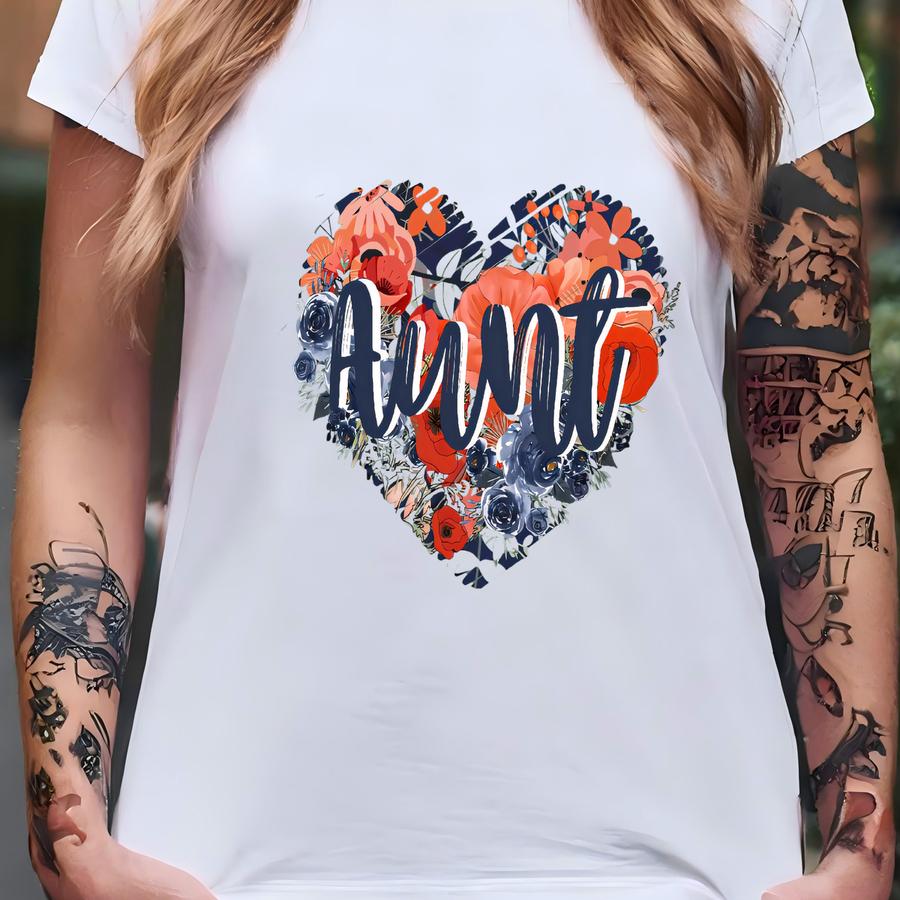 Aunt Floral Heart Tee, Cute Gift For Her, Everyday Wear, Spring Fashion, Casual Style, Birthday Gift T-shirt