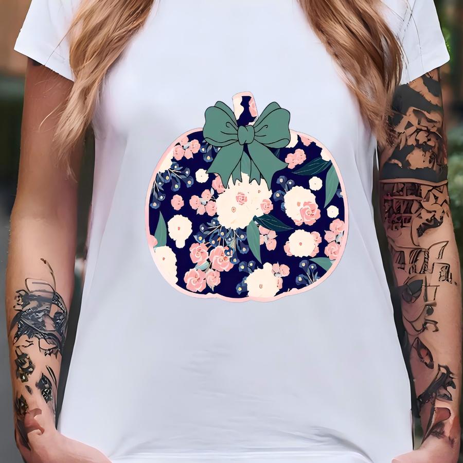 Floral “grateful” Pumpkin With Bow – Navy, Pink, Green Cream – Garment-dyed Hoodie, Thanksgiving, Fall, Pretty, Autumn T-shirt