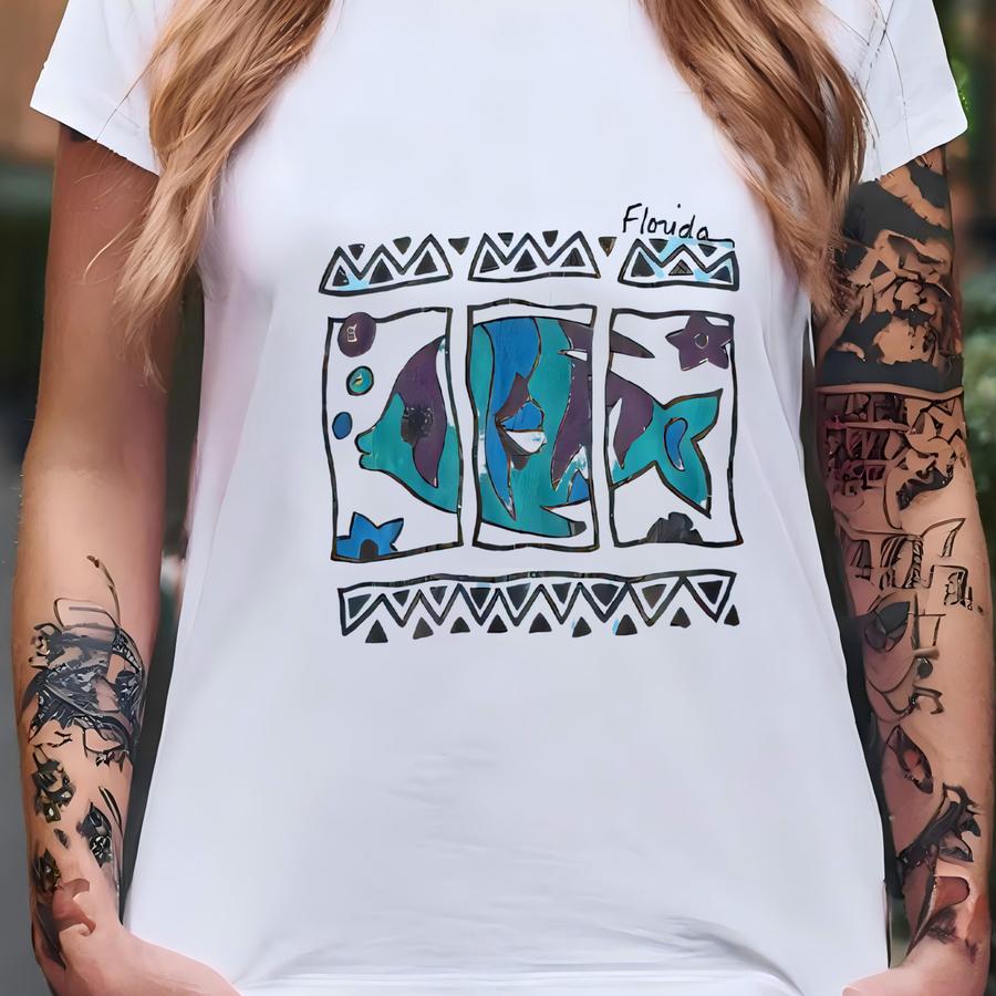 Women's Vintage 90's Florida Tropical Fish Dyed Blue Crop Top Tee Shirt Sz Large T-shirt