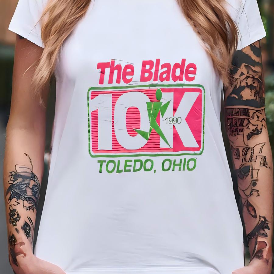 Vintage 1990 The Blade 10k Run Toledo Ohio White Long Sve Shirt Sz Medium Vtg T-shirt