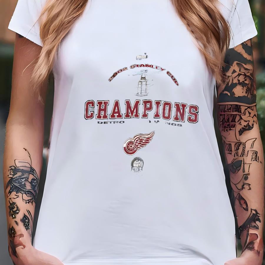 Vintage 2002 Detroit Red Wings Cup Champions Gray Red Tee Shirt Sz Large T-shirt