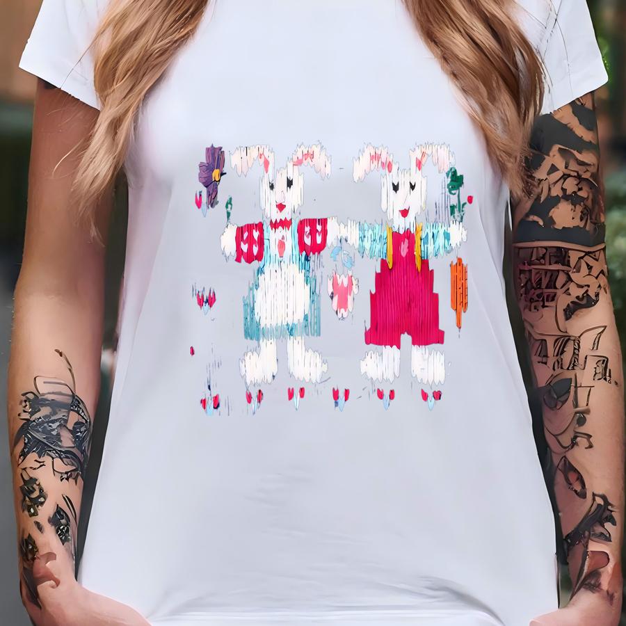 Women's Vintage Northern Isles Hand Bunny Rabbits Sweater Sz Large T-shirt