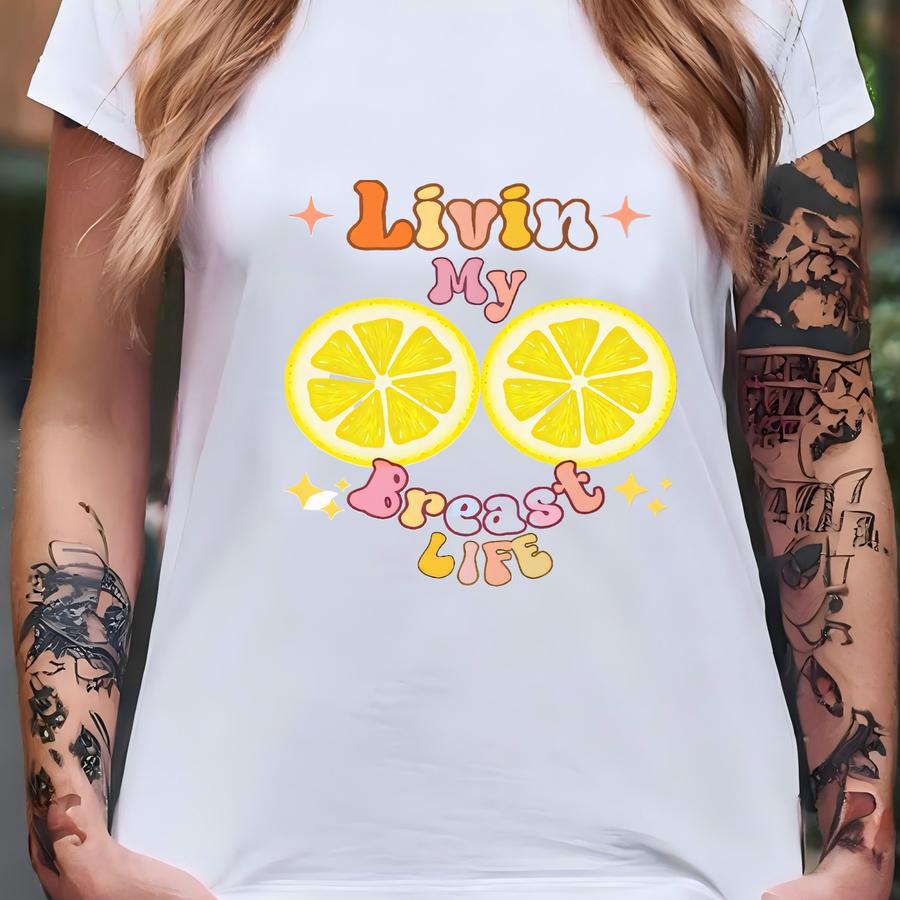 Breast Surgeon Coffee Mug, Breast Cancer Awareness Mug For Women, Post Surgery Citrus Inspired Cup, Mammographer Mug, Livin My Breast Life T-shirt