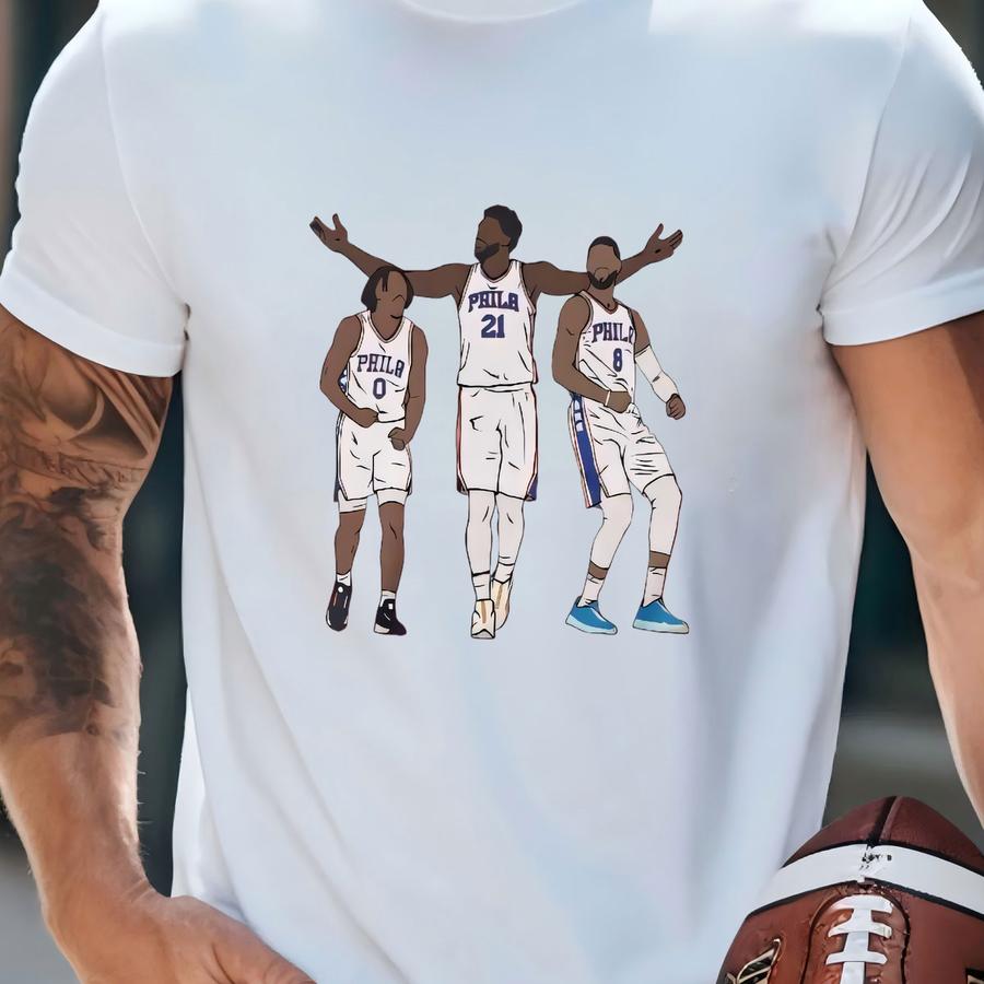 Youth Hoodie Tyrese Maxey, Joel Embiid Paul George Philadelphia Big 3 Tee Kids Sizes T-shirt