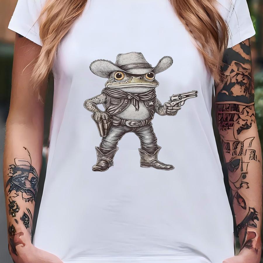 Cowboy Frog Shirt Funny Frog Tshirt Cowboy Hat Boots Pistol Gun Western Toad Frog Lover Cowgirl Gift Hoodie T-shirt