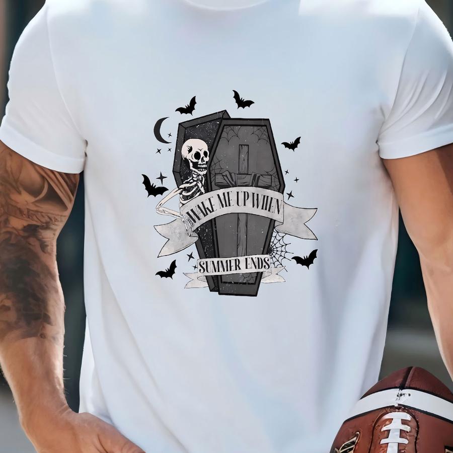 Wake Me Up Summer Ends Shirt, Summer Halloween Shirt, Halloween Lovers Shirt, Spooky Season Shirt, Skeleton Shirt, Halloween Gift Shirt T-shirt
