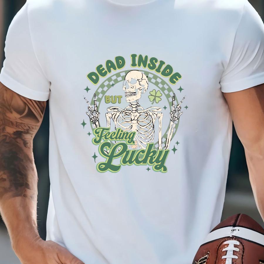 Dead Inside But Feelin' Lucky Sweatshirt, Dead Inside It's St Patrick's Day Hoodie, Funny St Patrick's Day Sweatshirt, Skeleton Patricks Day T-shirt