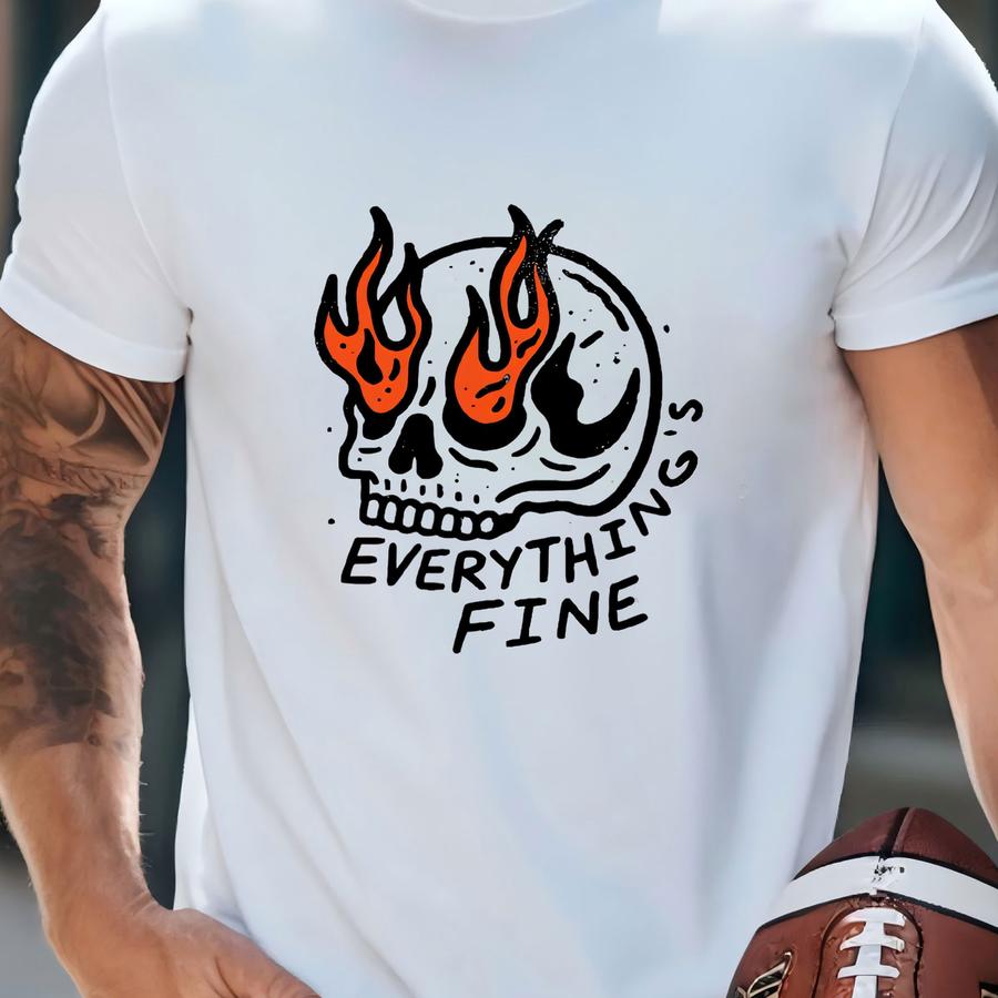 Everything Is Fine Sweatshirt: Retro Grunge Flaming Skull Tee T-shirt