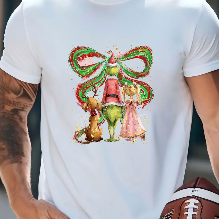 Funny Christmas Monster Bow Shirt - Retro Green Character Tee T-shirt