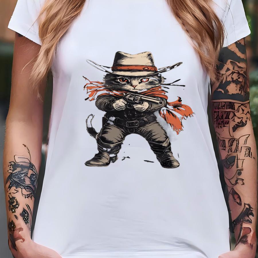 Cat Cowboy Hat Shirt Funny Cat Tshirt Cat Mom Dad Western Cat Lover Gun Pistol Cowgirl Gift Hoodie T-shirt