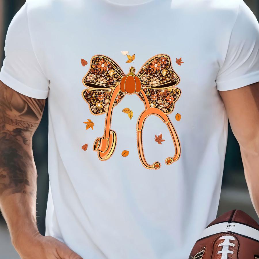 Fall Pumpkin Nurse Hoodie: Coquette Bow, Floral Autumn Tee T-shirt