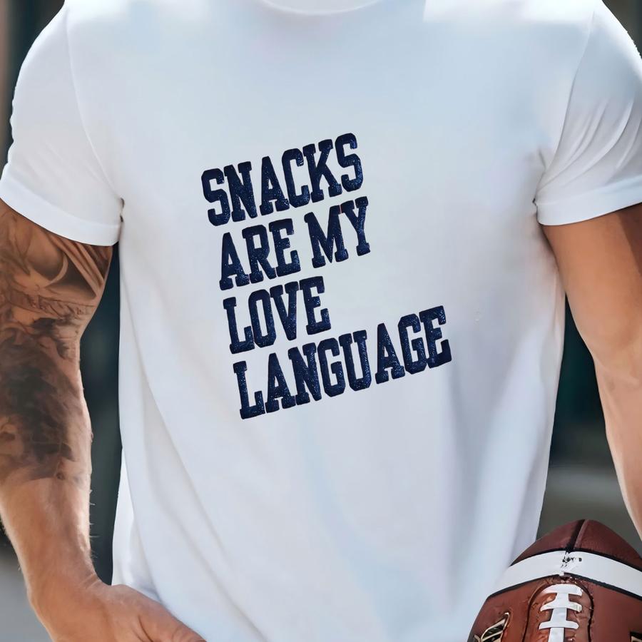Snacks Are My Love Language Glitter Sweatshirt, Funny Kids Gift, Valentine's Day Apparel, Food Lover's Sweatshirt, Cute And Funny Design T-shirt