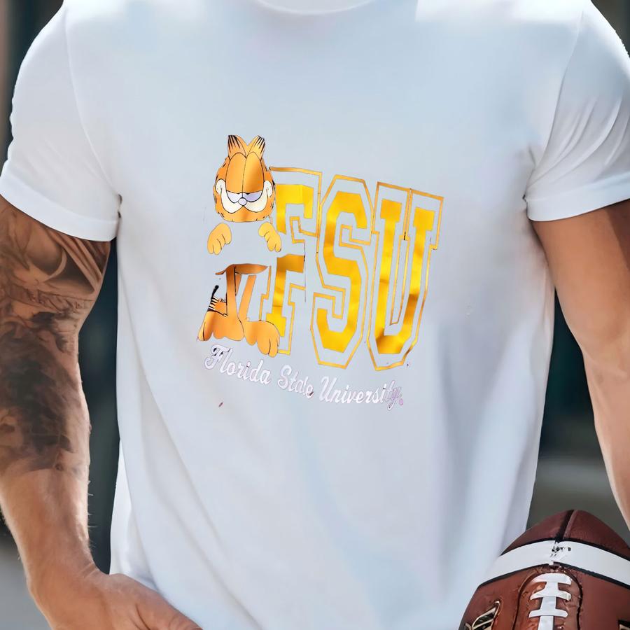 Vintage 90’s Florida State University Seminoles Garfield Crop Top Jersey Tee Large T-shirt