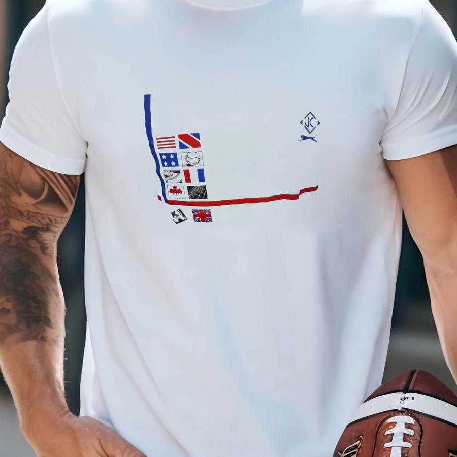 Vintage White Red Blue Jc Soccer Ringer Jersey Shirt Adult M 50-50 Usa Rare T-shirt