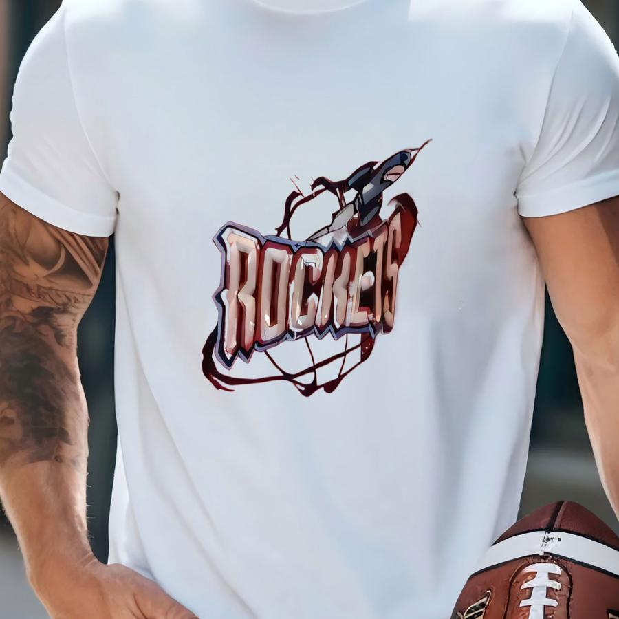 Vtg 90's Red Rocket Ship Sewn Basketball Polo Shirt Men 2xl T-shirt