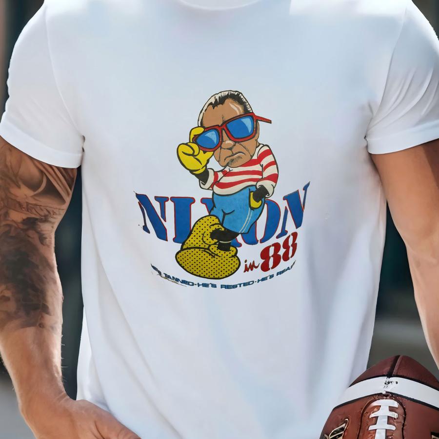 Vtg 1988 Richard Nixon Tan Ready Republican Political Cartoon Tshirt Rare Size M T-shirt