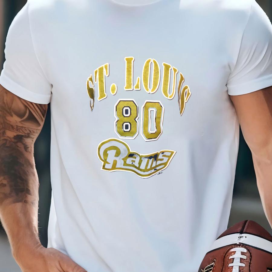 Vintage St. Louis Rams Blue #80 Isaac Bruce Screen V Neck Jersey Adult Xl T-shirt