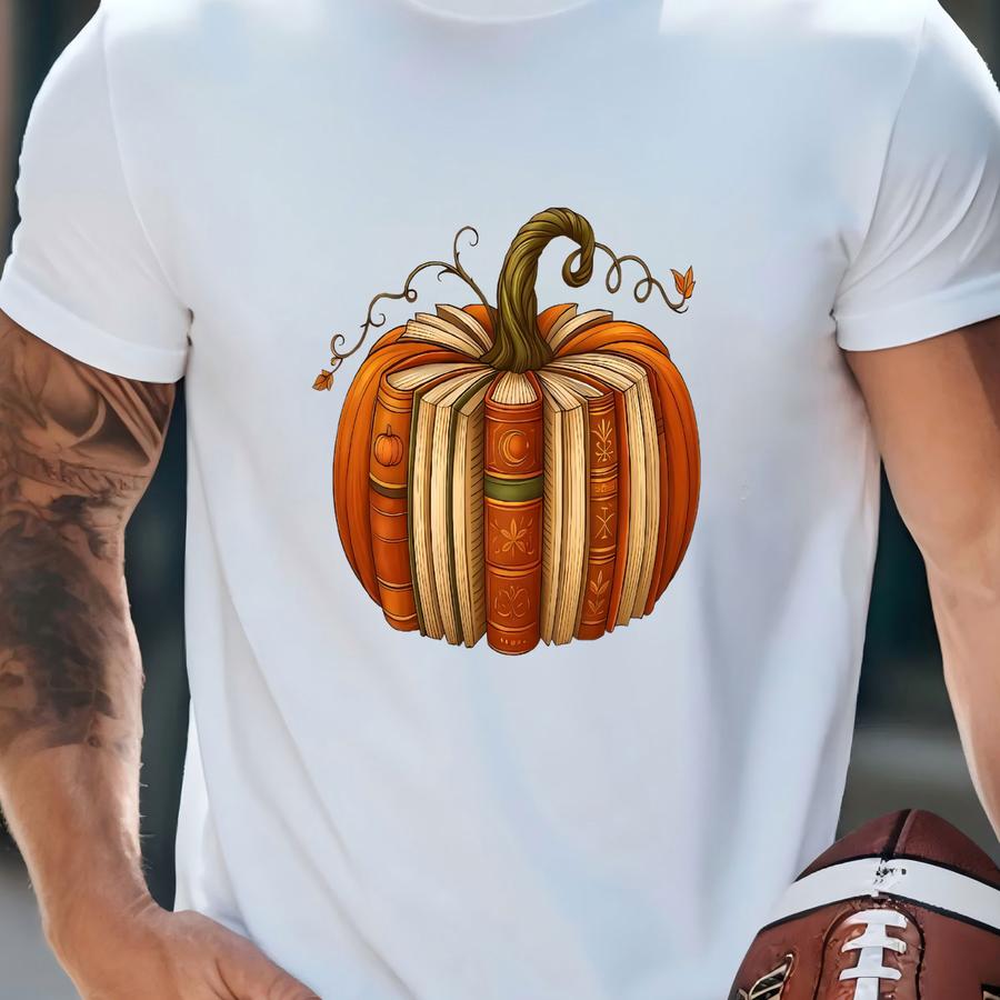 Bookish Pumpkin Sweatshirt, Fall Reading Pullover, Cozy Autumn Book Lover Crewneck, Pumpkin Book Stack Hoodie, Teacher Gift, Fall Outfit T-shirt