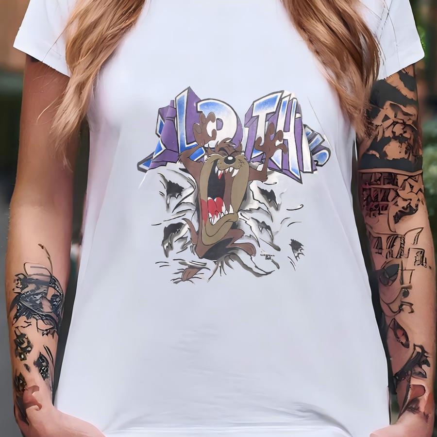 Vintage 90s Looney Tunes Sweatshirt Tasmanian Devil Crewneck Porky Pig Sweater Pullover Daffy Duck Bugs Bunny Print Logo White T-shirt