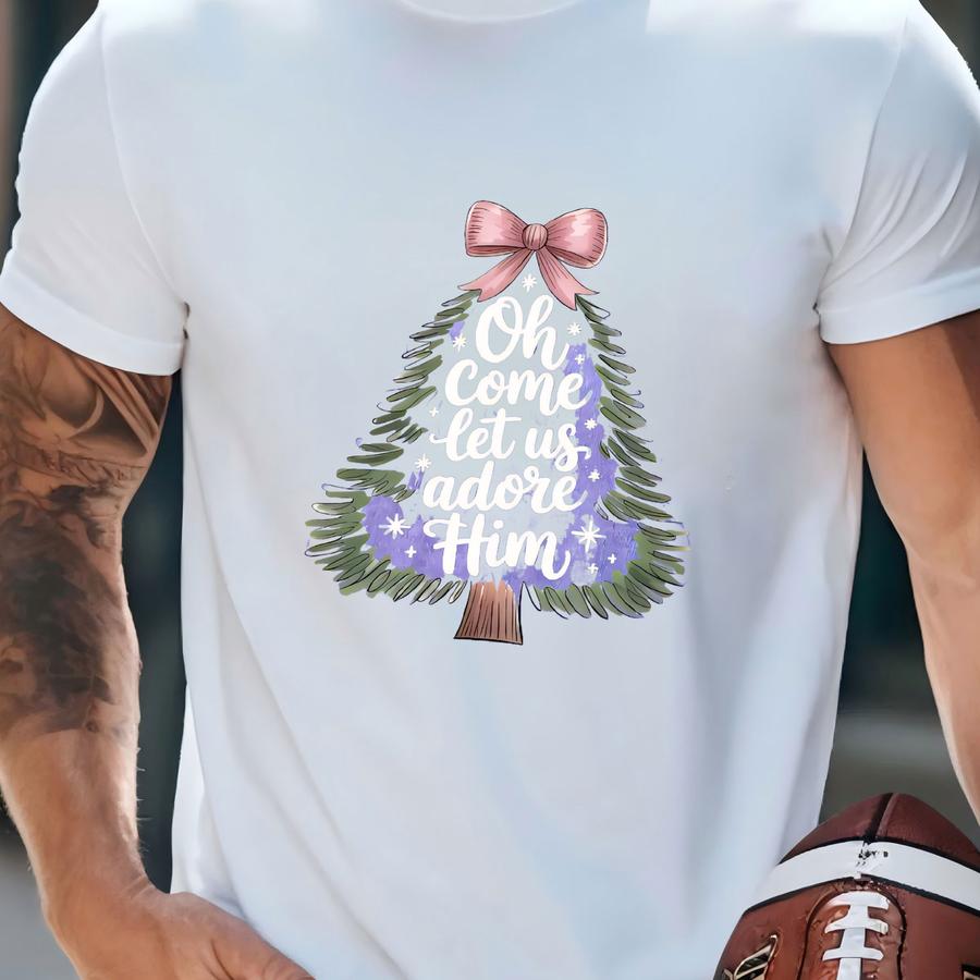 ® Oh Come Let Us Adore Him Shirt, Nativity Christmas Shirt, Christmas Christian Tee, Christmas Tree Coquette, Merry Christmas T-shirt