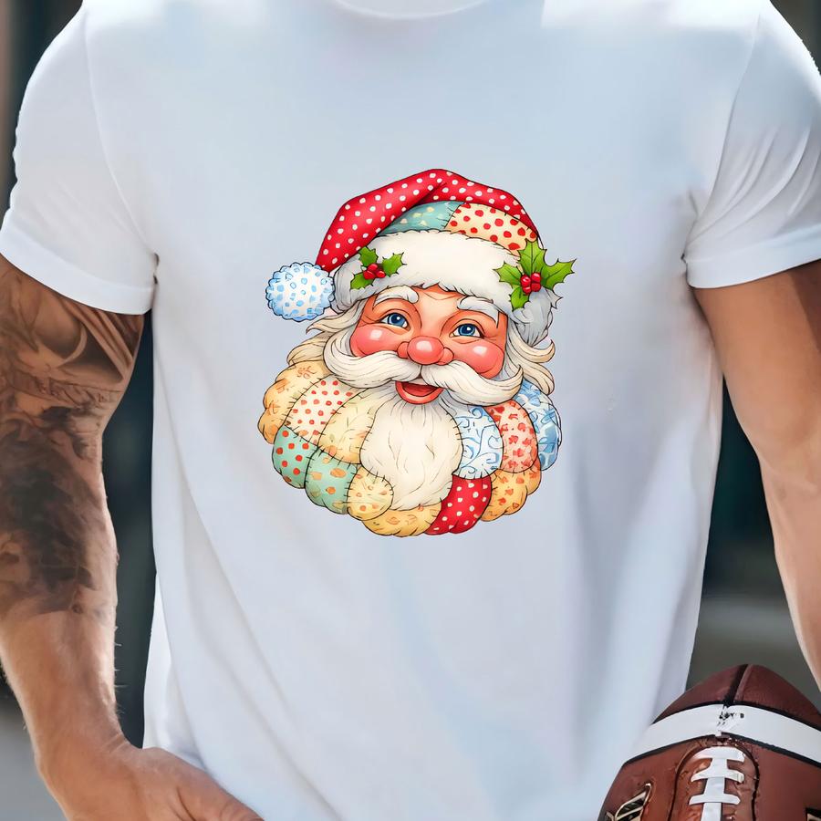 Retro Santa Claus Sweatshirt: Colorful Patchwork Christmas Graphic Hoodie T-shirt