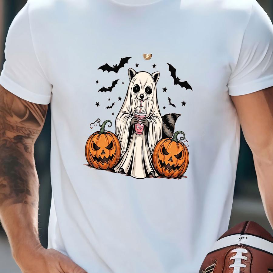 Cute Raccoon Ghost ® Shirt, Retro Halloween Shirts, Spooky Season Gift, Raccoon Halloween Shirt,pumpkin Fall Tee,halloween Tee T-shirt