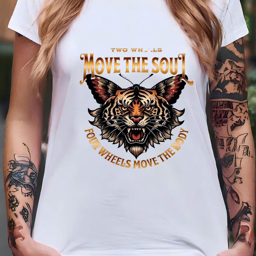Women's Motorcycle Zip Hoodie: Lion Butterfly Graphic, Two Wheels Move The Soul T-shirt