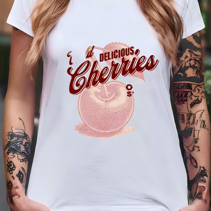 Wild Cherries Coquette Cropped Shirt, Soft Girl Era, Vintage-style Food, Farmers Market Shirt, Cute Cherries Shirt, Cherry Fruit Modest Crop T-shirt