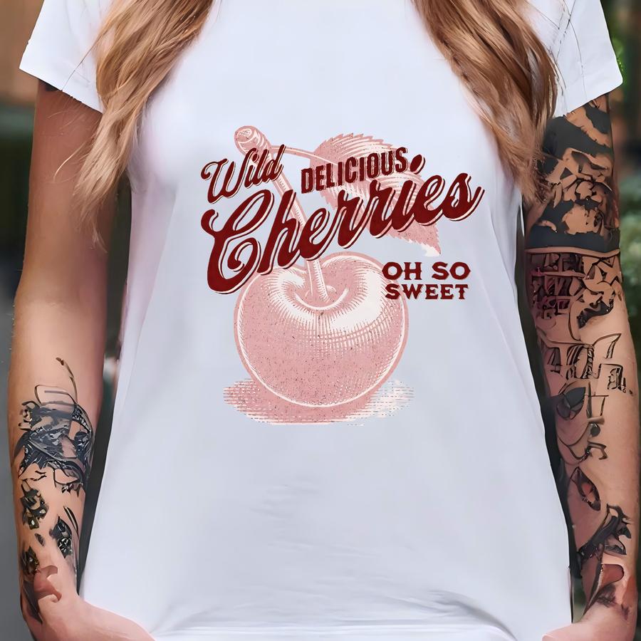 Wild Cherries Coquette Sweatshirt, Soft Girl Era Gift, Vintage-style Food, Farmers Market Crew, Cute Cherries Shirt, Delicious Yummy Cherry T-shirt