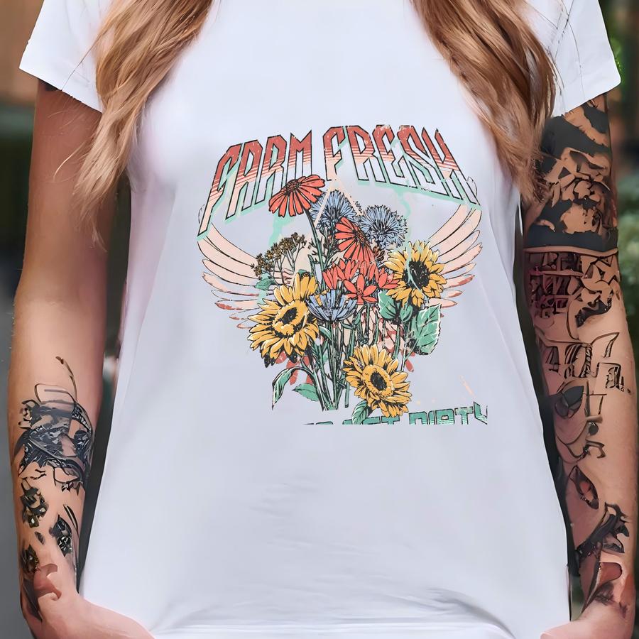 Farm Fresh Farmer's Market Canvas And Denim Tote, Rock-n-roll Style Plant Mama, Farmer Girl Tote, Gift For Sister, Farm Lover Tee T-shirt