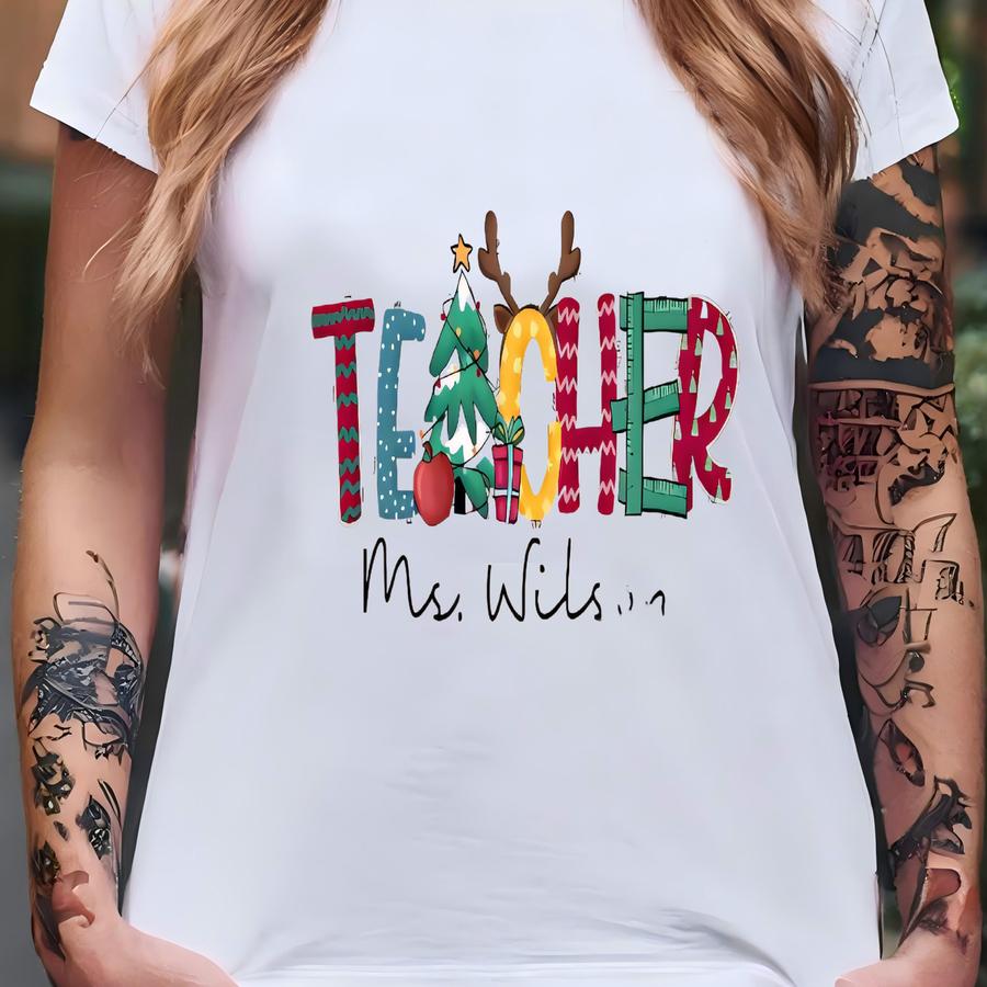 Custom Christmas Teacher Sweatshirt, Personalized Christmas Teacher Hoodie, Christmas Shirt, Xmas Gift, Christmas Teacher Shirt,teacher Gift T-shirt