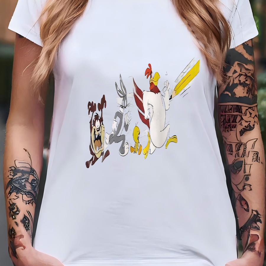 Vintage 90s Looney Tunes Sweatshirt Crewneck Pullover Tweety Bugs Bunny Tasmanian Devil Daffy Duck Foghorn Leghorn Print Logo Grey Large T-shirt