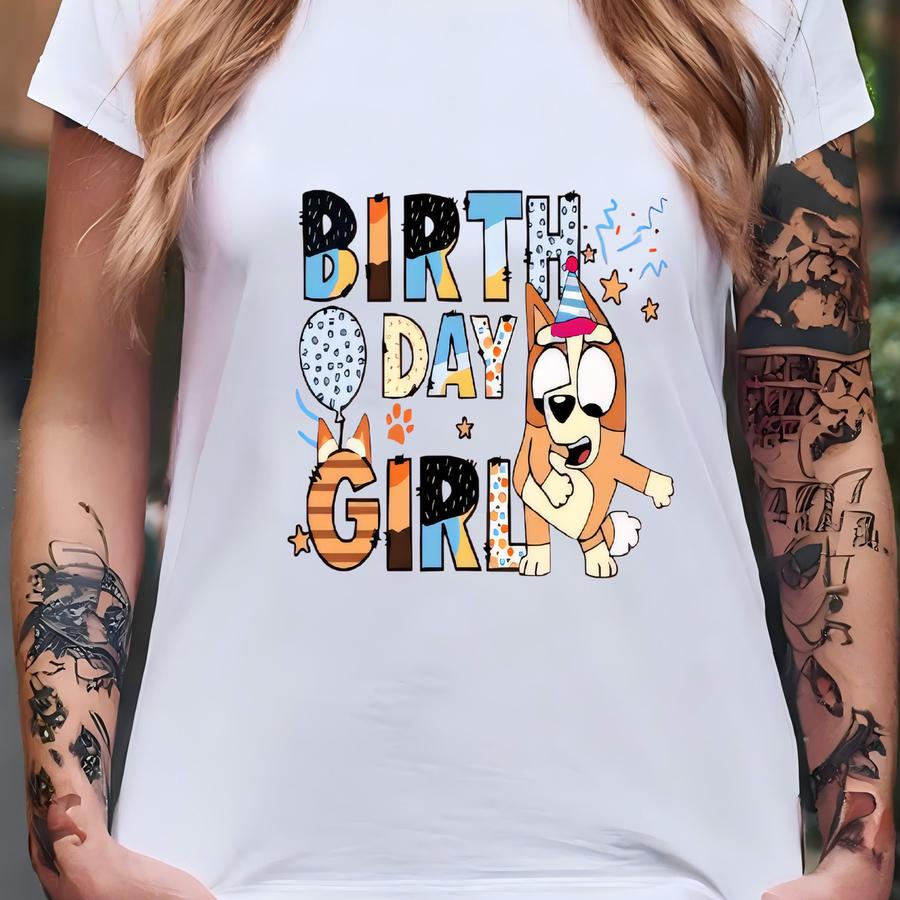 Blue Dog Birthday Girl Shirt Front Back | Bingo Custom Name Age | Personalized Party Tee | Bingo Theme Kids Birthday Shirt And Sweatshirt T-shirt