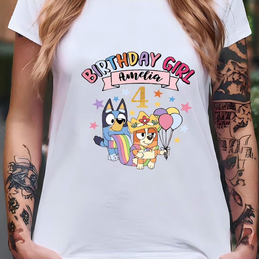 Custom Name Blue Dog And Bingo Birthday Girl Shirt And Sweatshirt - Family Matching Blue Dog Tee - Personalized Party Tee For Mom Dad Sister T-shirt